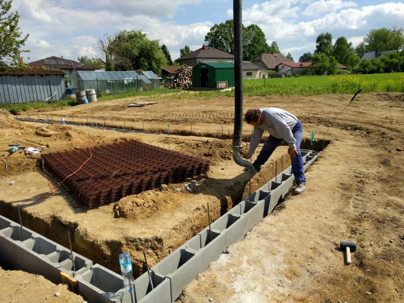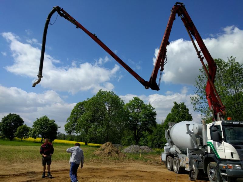 Dnes ve 4 hodiny máme v plánu vylít ztraceného bednění. Na tuhle akci jsme si objednali mix s pumpu, abychom to nemuseli plnit betonem ručně, uvidíme jak to půjde.