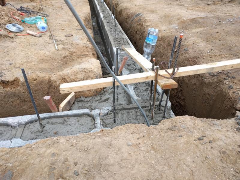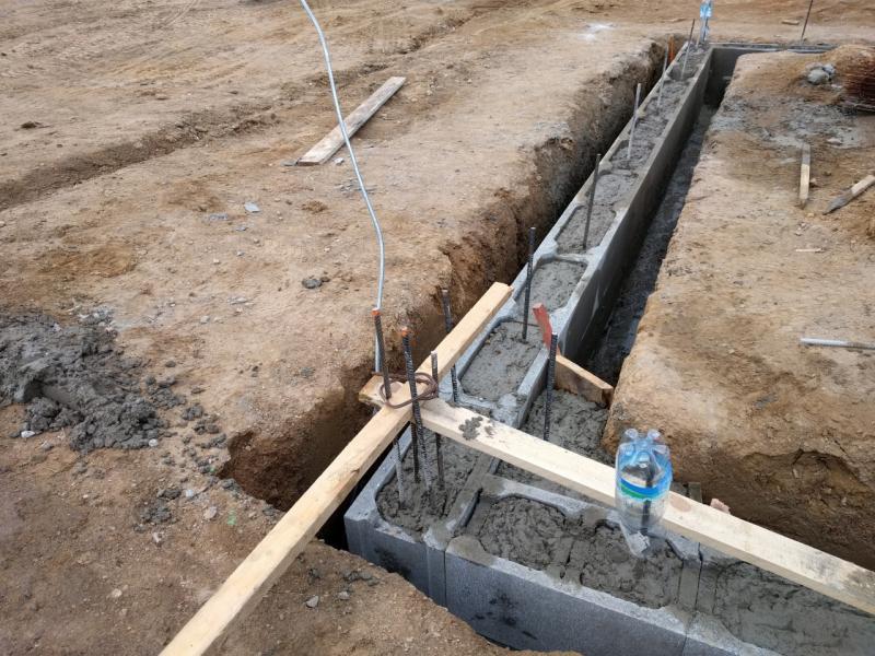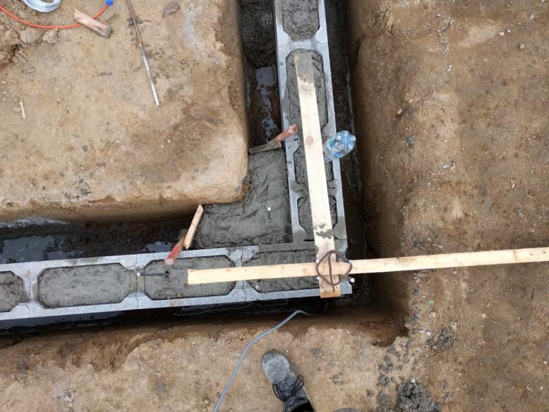 Vyztužení základů pod rohovým sloupkem a betonování ztraceného bednění