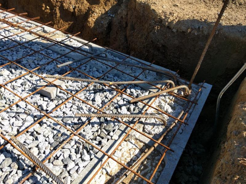 Dnes jsme se pustili do posledních příprav před bedněním a zalitím desky. Nejprve nás čekalo naohýbání roxorů do kari sítí. Připravenou trubkou jsme vždy ohnuli roxor dovnitř desky tak, aby se poté dal pěkně svázat vázacím drátkem s kari sítí.