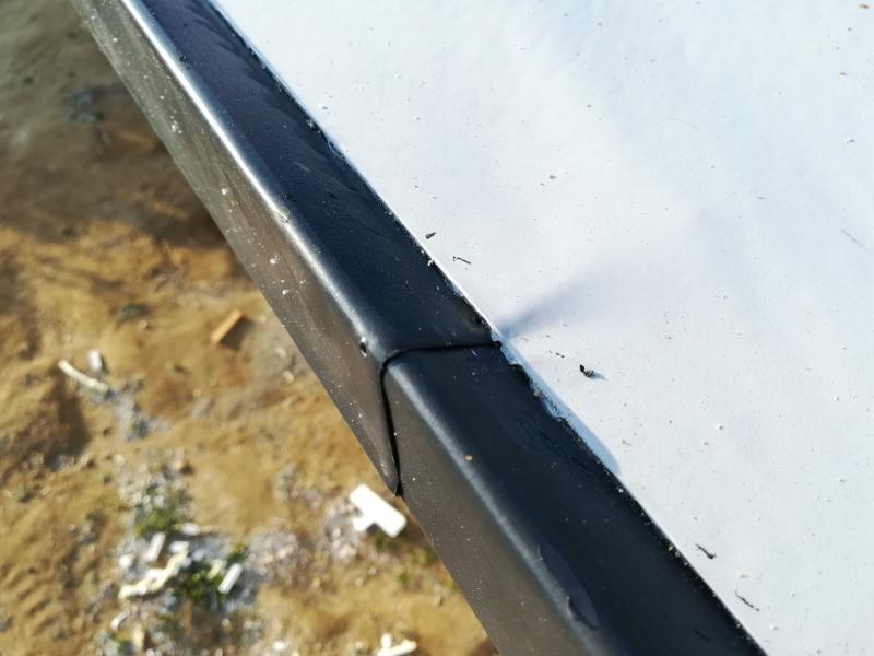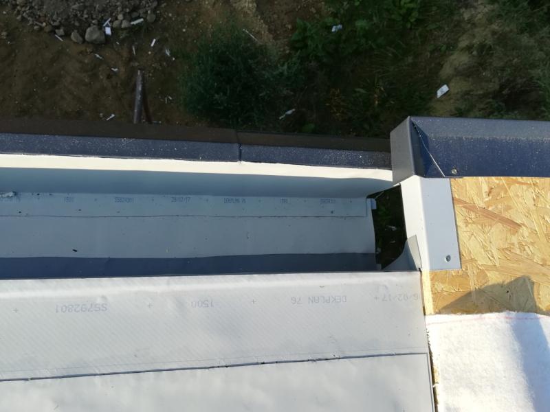 Ráno jsem jim opět vše připravil a nehal je pracovat. Odpoledne mi kolem 14 hod pan Jureček volal, že mají hotovo. Přijel jsem za nimi a střechu jsem si s ním začal procházet. Sřecha komplexně vypadala parádně. Sice se mi pár detailů nezdálo (hlavně zpracování u chrliče a potom jsem měl představu, že bude méně sváru v okapovém žlabu, pár dalších věcí, ale ty už nestály tolik za řeč), ale nic co by kazilo dojem z jejich odvedené práce. Co se mi nezdálo mi vždy pan Jureček vysvětlil, že tak je to naprostém pořádku, že dělají bazény, že folie a sváry jsou 100% jistota, tak ať nemám obavy. Věřil jsem mu.