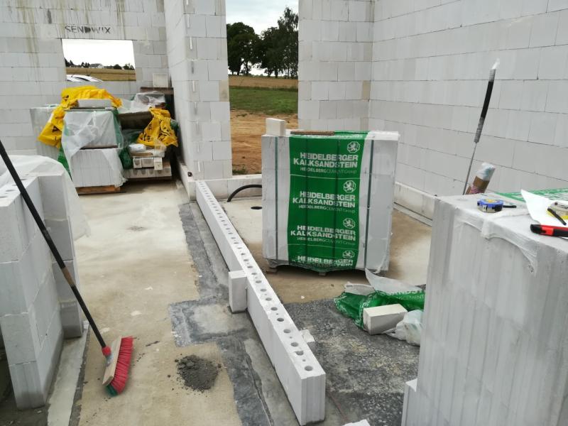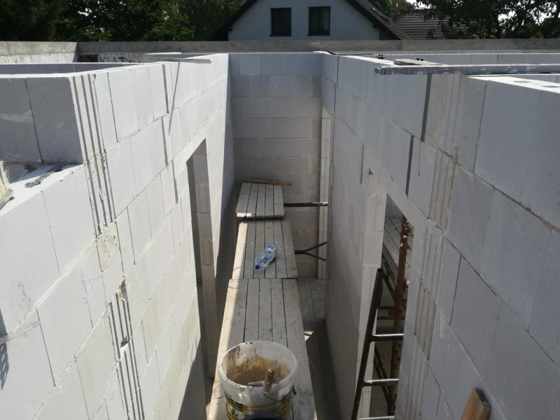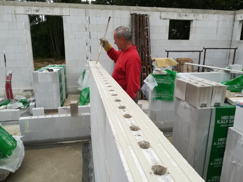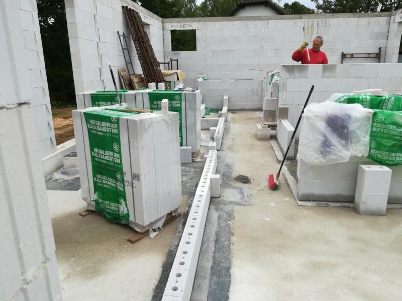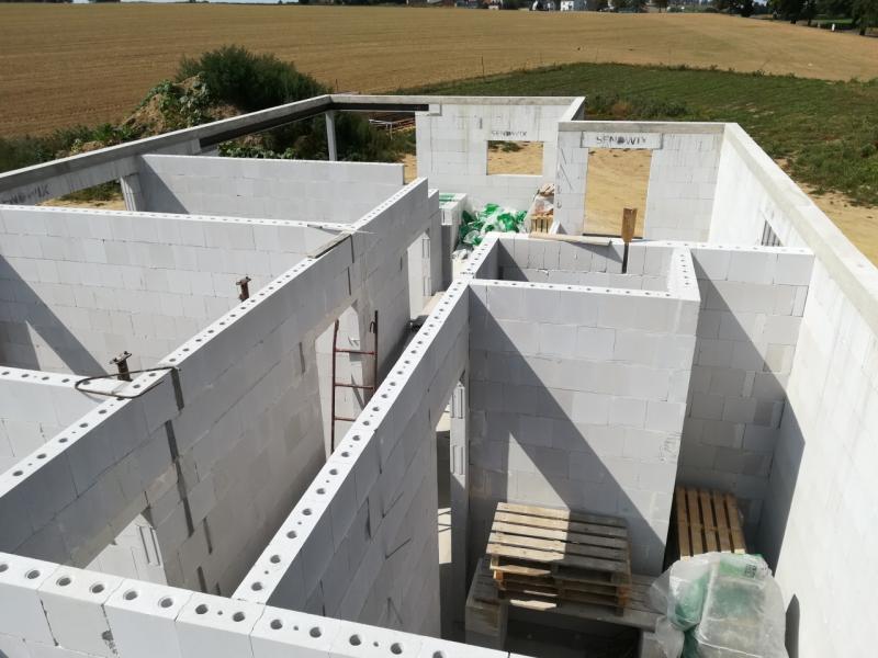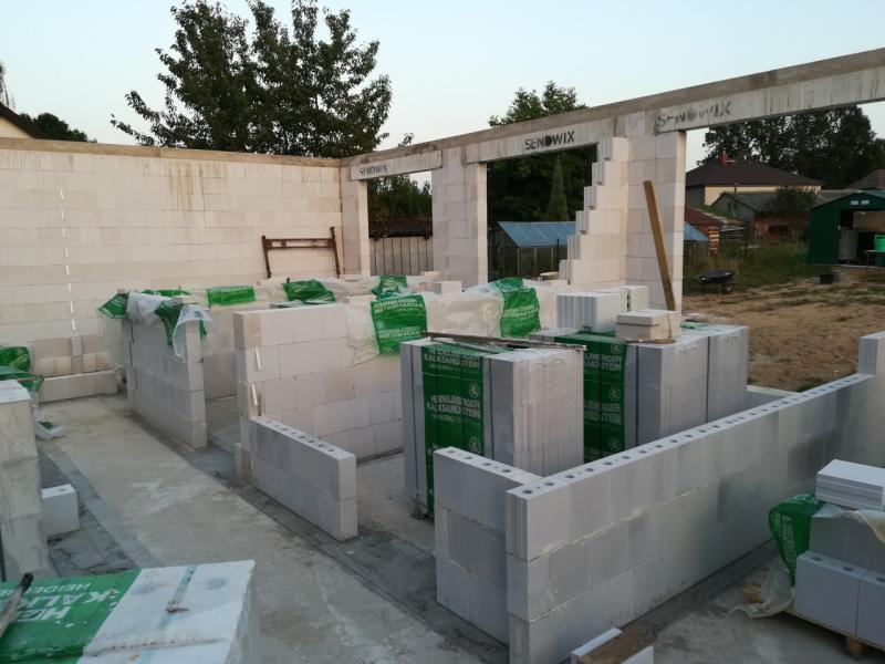 Jak všichni odjeli, zbyl jsem na to sám, ale tak 2/3 příček bylo vyzděno a s překlady, tak na mě zbylo dozdít poslední 3 šáry a pokračovat u těch, kde jsme měli zatím jen založeno. Protože plán je jasný, než přivezou panely, mít všechny příčky hotové.