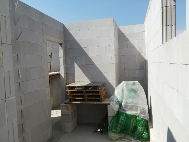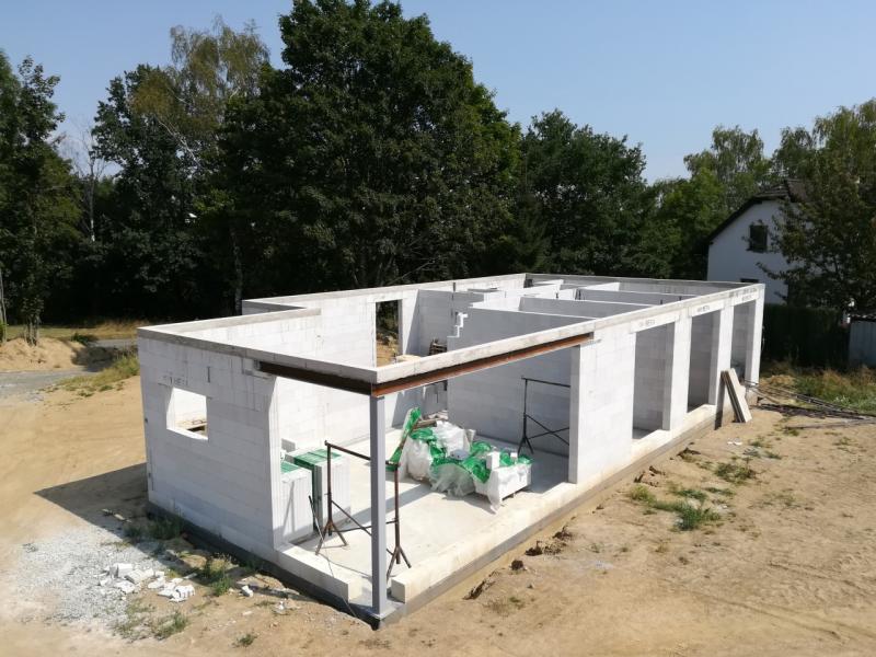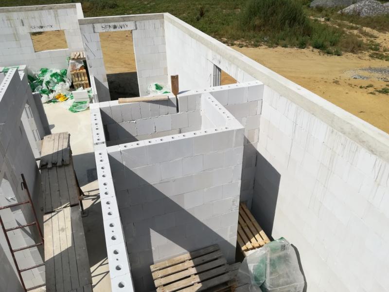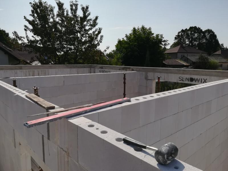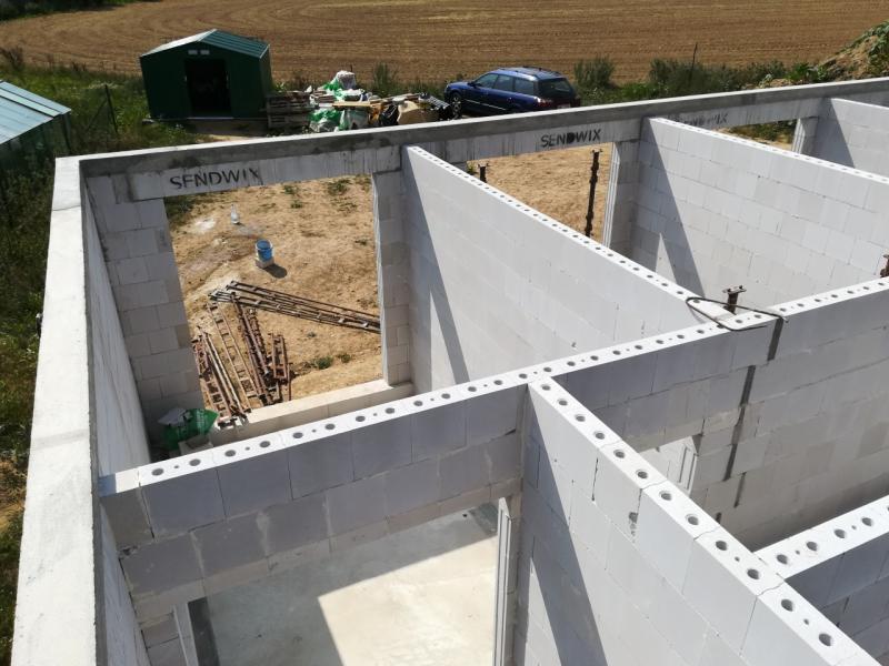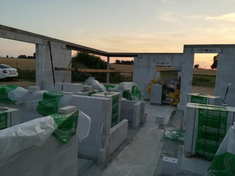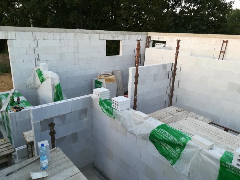Jak všichni odjeli, zbyl jsem na to sám, ale tak 2/3 příček bylo vyzděno a s překlady, tak na mě zbylo dozdít poslední 3 šáry a pokračovat u těch, kde jsme měli zatím jen založeno. Protože plán je jasný, než přivezou panely, mít všechny příčky hotové.