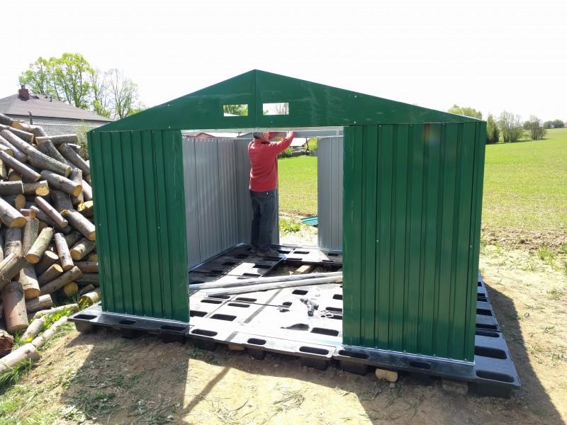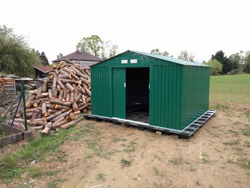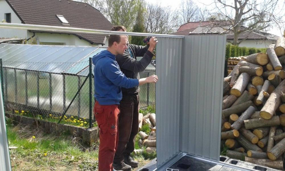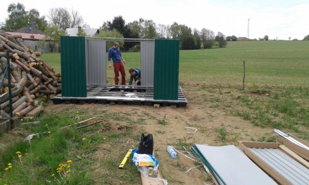 Ruce už svrbí, ale do hlíny se ještě nehrabe, tak se aspoň pouštíme do stavby plechové boudy, která by měla sloužit jako úschovna drobného materiálu, pracovních pomůcek, případně zásob posilnění při práci. Uvažujeme do budoucnosti, že si boudu necháme jako zahradní domek, takže původní plán sehnat něco provizorního levnějšího z druhé ruky je smeten ze stolu. Také proto, že by cena nějaké prorezlé boudy s dopravou vyšla na podobné peníze.